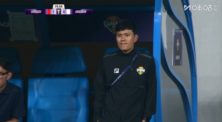 > 想啥呢?蓉城80分钟1球跳动,江原主帅场边倚靠着替补席若有所想