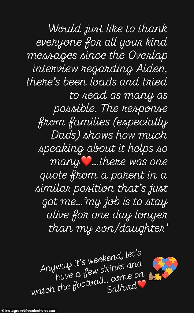 50岁的斯科尔斯在Stick to Football 节目中坦诚地谈到了奉养他患有自闭症且不会言语的女儿艾登(艾丽西亚的弟弟)所濒临的挑战。
