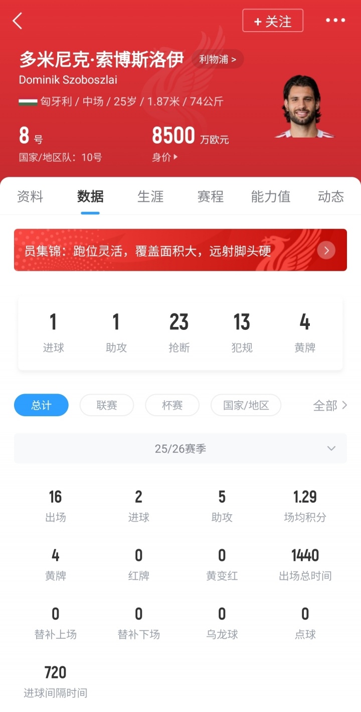 25岁的索博斯洛伊当今周薪13万欧,与欧洲顶级俱乐部同位置球员比较差距权贵↓