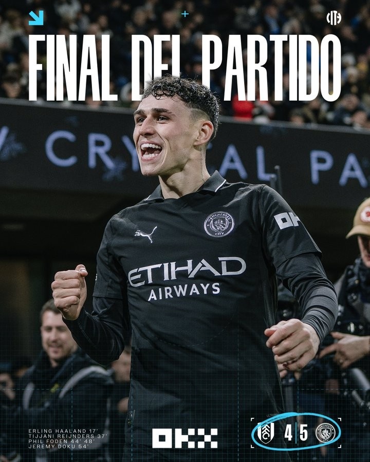 曼城近16次英超对富勒姆全胜,亦然联赛历史随性两队对战最长连胜