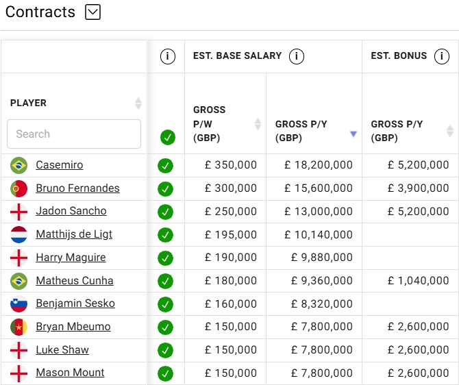 据球员薪资网站capology数据统计,现在桑乔在曼联的基础周薪为25万英镑,约合年薪1300万英镑,同期还有最高520万英镑的奖金。