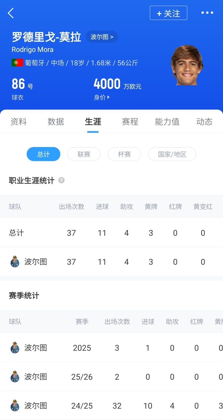 08月30日讯 据记者Sacha Tavolieri独家报说念,吉达结合欢喜支付7000万欧解约金,签下18岁波尔图新星莫拉。