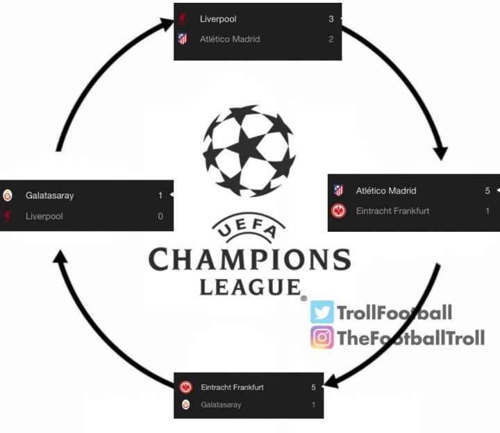 利物浦>马竞>法兰克福>加拉塔萨雷>利物浦