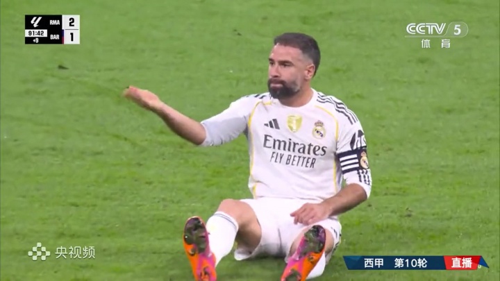 比赛第92分钟,突前的阿劳霍与卡瓦哈尔战役后倒在皇马禁区内,阿劳霍、拉什福德、亚马尔等多名巴萨球员举手投诉,卡瓦哈尔暗示“起来起来”。