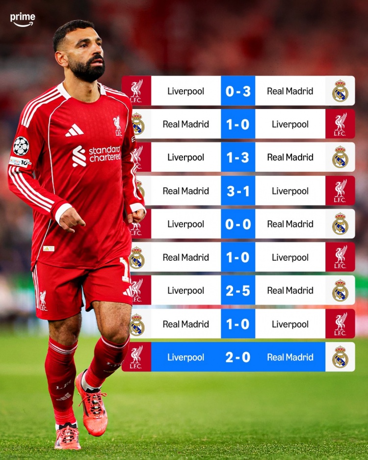 据媒体统计,近9次对阵皇马,利物浦仅取胜1场,具体战绩1胜1平7负,打进6球丢17球。