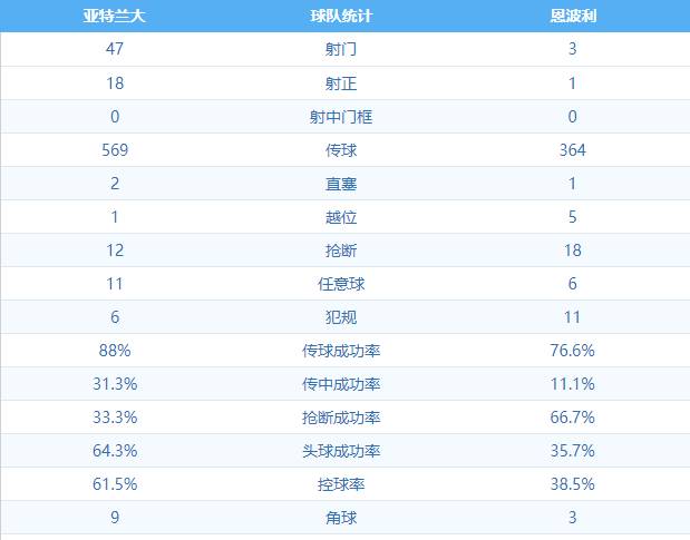 值得一提的是,在2019年4月亚特兰大着重甲0-0战平恩波利,本场亚特兰大狂轰47脚射门,共计18脚射正,莫得得益进球。