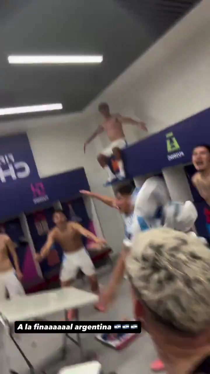 今天,阿根廷U20活着青赛半决赛1-0打败哥伦比亚U20,挺进决赛。赛后,球员们在更衣室豪恣庆祝。