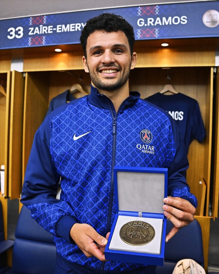 此役是贡萨洛-拉莫斯为巴黎出战的第100场比赛,他觉得打进38球,助攻8次,赛后俱乐部向他颁发了百场挂念徽章。
