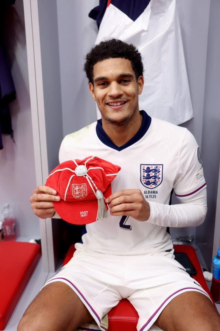 演出首秀!宽萨是英格兰队史第1297位出场球员,赛后获赠回想帽子