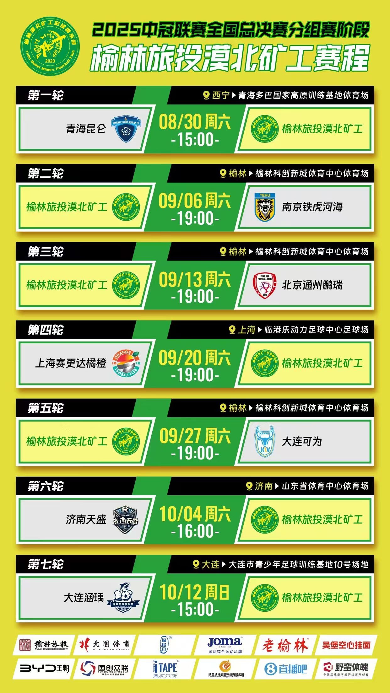2025年8月,中国足球协会会员协会冠军联赛(中冠联赛)宇宙总决赛的抽签典礼在北京举行,16支参赛球队的分组赛对阵表致密出炉。代表陕西足球出征的榆林旅投漠北矿工足球俱乐部将与其他15支球队在8月底张开角逐,争夺3.5个贵重的中乙联赛晋级限额。