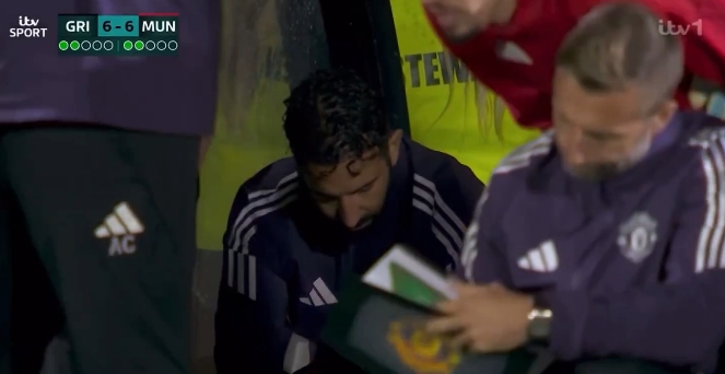 点球大战进行中时,镜头给到阿莫林,阿莫林坐在培育席上,他低着头莫得看向场上。