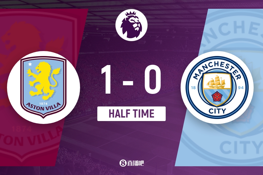 上半场伤停补时3分钟,半场适度,曼城暂0-1维拉。