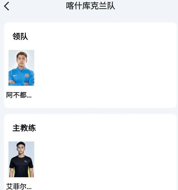 喀什库克兰队的大名单当中,阿不皆海米提倡目下领队位置,球队主磨真金不怕火则是效劳亚泰的艾菲尔丁。